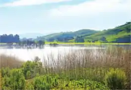 A report on the area's importance as a critical wildlife corridor recommended a riparian restoration project along Fisher Creek to reestablish stands of California sycamores (Platanus racemosa), Fremont cottonwoods (Populus fremontii) and willows (Salix sp.) and a reestablishment of valley oaks (Quercus lobata) throughout the valley.[12] Fisher Creek is tributary to the largest freshwater wetland in Santa Clara County, Laguna Seca. “In Coyote Valley, Laguna Seca offers a rare opportunity to restore natural wetland functions and a diverse wetland habitat mosaic. Laguna Seca restoration would link to existing buffers and have regional significance as a large, natural, valley floor wetland.”[13] These seasonal wetlands provide critical habitat to many species of wildlife year round and are important to migratory birds. Laguna Seca's vernal pools provide habitat for endangered species such as the California tiger salamander (Ambystoma californiense) and the California red-legged frog (Rana draytonii).[12]
