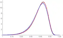 In statistics, the Fisher transformation (or Fisher z-transformation) of a Pearson correlation coefficient is its inverse hyperbolic tangent (artanh). When the sample correlation coefficient r is near 1 or -1, its distribution is highly skewed, which makes it difficult to estimate confidence intervals and apply tests of significance for the population correlation coefficient ρ.[1][2][3] The Fisher transformation solves this problem by yielding a variable whose distribution is approximately normally distributed, with a variance that is stable over different values of r.