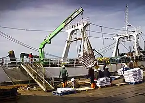 The island is reported to have 20 ocean going fishing vessels and is capable of meeting 10% requirement of squid fishes in the world. There are special squid jigging vessels which can fish Illex argentinus squid. Trawlers are used for fishing Doryteuthis (gahi squid) are under the joint ownership of Falklands and European companies.[2] Korean trawlers have fished here and found about 12 species of skates and rays which include Bathyraja griseocauda, Bathyraja albomaculata, Bathyraja brachyurops and Dipturus chilensis.[4]