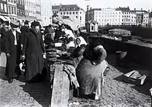 Fishwife (Danish: Fiskerkone) is a 1940 granite statue of a fishwife situated at Gammel Strand in Copenhagen, Denmark, commemorating the fact that the city's principal fish market was then located at the site. It represents one of the so-called Skovser Women who, wearing their traditional garments, used to dominate the market trade. The fish market closed in 1958.