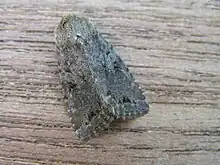The wingspan is 32–42 mm. The length of the forewings is 15–19 mm. Forewing grey, dusted with blackish, and with more or less reddish brown suffusion; a dark streak from base below cell; inner and outer lines pale, very obscure; submarginal line pale, distinct, generally preceded by dark marks; stigmata of the ground colour, the cell dark fuscous; claviform long, pointed, often followed by two black streaks to outer line; orbicular irregular in shape, often elongate below and touching reniform; hindwing fuscous, often paler towards base; the rarer grey form, with very sparse rufous suffusion represents the type; the commoner rufous-suffused examples are corticea Esp. ; ab. nigrescens Tutt is a rare form with blackish forewings; variegata Tutt is purplish blackish; the costa marked with a series of short black streaks; orbicular and upper part of reniform pale, likewise the claviform; veins pale, the intervals of the dark ground colour, giving a striated appearance; all the lines pale; — ab. conjuncta ab. nov. [Warren] is; purplish fuscous, the veins and stigmatal annuli whitish, the upper stigmata strongly conjoined: — in orenburghensis Bartel the ground colour is whitish grey, the darker shades rufous grey, especially the cell; the orbicular stigma large, whitish grey, prolonged below to touch the reniform, which is dark with a pale ring; the space beyond it rufous grey with the veins pale across it; below the median vein the claviform stigma and the area within the median shade are also pale grey;hindwing with basal half paler, showing a dark cellspot and outer line.[1] The larva is brown, sometimes inclining to reddish marked with black above, and the under surface is paler; there are three pale lines along the back, and one low down along each side.The head is pale brown freckled with darker brown.