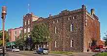 The complex comprises ten buildings, constructed and altered as needs changed over time. Most are utilitarian in design, but four buildings facing Superior Street exhibit the Richardsonian Romanesque style popular in the last two decades of the 19th century. They are characterized by their massive scale, semicircular arches, and uncoursed basalt masonry with a rusticated texture and subtle polychrome.[2]