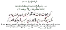 The first Quran verse about Fitna was supposedly revealed during the Nakhla Raid. After his return from the first Badr encounter (Battle of Safwan), Muhammad sent Abdullah ibn Jahsh in Rajab with 12 men on a fact-finding operation. Abdullah ibn Jahsh was a maternal cousin of Muhammad. He took along with him Abu Haudhayfa, Abdullah ibn Jahsh, Ukkash ibn Mihsan, Utba b. Ghazwan, Sa'd ibn Abi Waqqas, Amir ibn Rabia, Waqid ibn Abdullah and Khalid ibn al-Bukayr.[7][8] Muhammad gave Abdullah ibn Jahsh a letter, but not to be read until he had traveled for two days and then to do what he was instructed to do in the letter without putting pressure on his companions. Abdullah proceeded for two days, then he opened the letter; it told him to proceed until he reached Nakhla, between Mecca and Taif, to lie in wait for the Quraysh, and to observe what they were doing.[7]