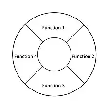 James Boritz et al. (1991)[30] compared radial menu designs. In a radial menu all items have the same distance from the prime pixel. The research suggests that in practical implementations the direction in which a user has to move their mouse has also to be accounted for. For right-handed users, selecting the left-most menu item was significantly more difficult than the right-most one. No differences were found for transitions from upper to lower functions and vice versa.