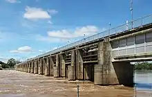 The Fitzroy River Barrage is a mid-river dam system constructed on the Fitzroy River in Rockhampton, Queensland, Australia which separates the tidal river into saltwater and freshwater sections.[1] It was designed to dam the river, enabling a permanent water supply to be stored for the city and its surrounding communities as well as providing an agricultural water supply for registered rural users.[1]