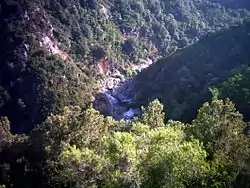 Above and below the Sampolo dam the river has cut two series of rocky gorges. A small pool between the two has now been covered by the reservoir. The upper gorge, the Défilé des Strette, is less dramatic than the lower Défilé de l’Inzecca. The northern side of the Défilé de l’Inzecca is a Natura 2000 site.[7] The Inzecca gorge has unique geological and floristic aspects found nowhere else in Corsica or France.[8]