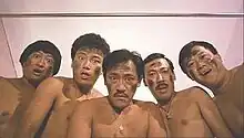 ![]() Screenshot from Twinkle, Twinkle Lucky Stars (l-r: Sammo Hung, Michael Miu, Richard Ng, Stanley Fung & Eric Tsang) | |