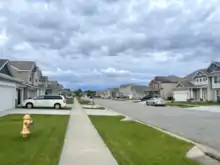 The neighborhood does not conform to the city's street grid. Instead, it takes on a much more suburban approach with winding roads and cul-de-sacs common.