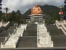 Mount Xuedou (雪竇山) has been recently promoted as a fifth sacred mountain of Chinese Buddhism. This was first advocated by Changxing (1896-1939), an associate of the famous reformer Taixu.[14][13] Xuedou mountain is seen as the sacred place of bodhisattva Maitreya.[8] It is located 8 kilometers north-west of Xikou Town, Fenghua City, Zhejiang. Xuedou Mountain is at 29°41'3.1"N, 121°7'12.0"E. Mount Xuedou is home to the newly expanded Xuedou monastery, which was originally founded in the Jin Dynasty and is connected with the eccentric monk named Budai, who is considered to have been an emanation of Maitreya.[13]