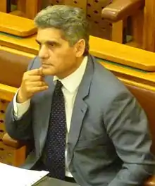 He secured a seat in the Parliament in the 2002 general elections as a candidate on the Fidesz National List.[2] Since May he has been participating in the work of the Committee on Human Rights, Minority and Religion as well as the Committee on European Integration. He held the post of deputy parliamentary group leader of Fidesz from 15 May 2002 to 1 November 2015. He was elected member of the Szolnok Assembly in the local elections in the autumn of 2002.[1] He was elected MP from the national list in the 2006 elections.[2]