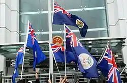 Prior to Hong Kong's transfer of sovereignty, the flag of Hong Kong was a colonial Blue Ensign flag.[3] The flag of colonial Hong Kong underwent several changes from then until 1997.