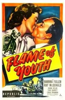 Flame of Youth is a 1949 American drama film directed by R. G. Springsteen and written by Robert Libott and Frank Burt. The film stars Barbra Fuller, Ray McDonald, Danny Sue Nolan, Tony Barrett, Carol Brannon and Anita Carrell. The film was released on September 22, 1949, by Republic Pictures.[1][2][3]