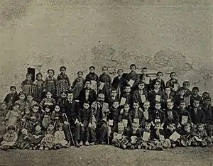 Negovani was a mixed Albanian speaking and Aromanian speaking village of the Florina area.[3] In statistics gathered by Vasil Kanchov in 1900, Negovani was populated by 620 Christian Albanians and 100 Aromanians.[8] The village refused Bulgarian moves for it to become involved in the Ilinden Uprising (1903)[6] against the Ottoman Empire. Diplomats from Greece considered Negovani secure and unaffected by Bulgarians and instead were concerned about Romanian propaganda in the village.[6] Negovani, with its population of hellenised Albanians, participated extensively on the Greek side of the Macedonian Struggle in the late Ottoman period.[9][10] Several local villagers[11] joined the Macedonian Struggle as fighters or agents.