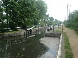 The River Lee Navigation passes the east of Cheshunt and was used for the transport of flowers and crops to the London markets for many years until road transport became more viable. A wharf existed just east of the railway on the site now occupied by Herts Young Mariners Base. The Youth Hostel was built on the site of the derelict open-air swimming pool.[32]
