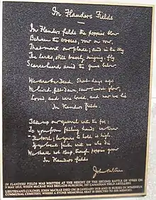The phrase was popularized by a poem, "In Flanders Fields", by Canadian Lieutenant-Colonel John McCrae which was inspired by his service during the Second Battle of Ypres.