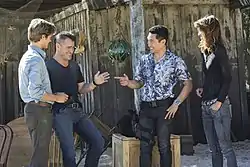 The episode featured three crossover appearances from Hawaii Five-0: Daniel Dae Kim as Chin Ho Kelly, Grace Park as Kono Kalakaua, and Taylor Wily as Kamekona.[1] It was also the first episode to feature Meredith Eaton as a main cast member.