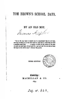 The Flashman Papers is a series of novels and short stories written by George MacDonald Fraser, the first of which was published in 1969. The books centre on the exploits of the fictional protagonist Harry Flashman. He is a cowardly British soldier, rake and cad who is placed in a series of real historical incidents between 1839 and 1894. While the incidents and much of the detail in the novels have a factual background, Flashman's actions in the stories are either fictional, or Fraser uses the actions of unidentified individuals and assigns them to Flashman. Flashman is a character in the 1857 novel by Thomas Hughes, Tom Brown's School Days; Hughes' version of the character is a bully at Rugby School who is expelled for drunkenness. The character was then developed by Fraser, and appeared in the 1969 novel Flashman. Fraser went on to write a total of eleven novels and one collection of short stories featuring the character.