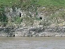 There are argentiferous (i.e. silver-bearing) galena deposits on Flat Holm; the pits and mounds visible on the surface of the island are a result of trial borings. A dispute over lead mining rights in the 1780s ended with John Stuart, Lord Mount Stuart making an official complaint that the lighthouse keeper was using the coals intended for the lighthouse for processing lead.[33] Mining for lead was not profitable, however, and the works were abandoned.[15] Red marl from the Triassic Period fills joints in the Carboniferous Limestone showing evidence of karstic (cave forming) processes during this period. Caves on the western and north-eastern sides of the island were used during the years of smuggling.[2]