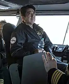 Prime Minister of Japan Shinzo Abe served as Chief Inspector of the 2015 Fleet Review and led the battle line from the bridge of the Japanese destroyer JDS Kurama.[4] Following the review, Abe helicoptered to USS Ronald Reagan to become the first serving Japanese prime minister to board a United States Navy aircraft carrier.[7]