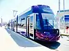 The final livery unveiled at the launch consists of white sides with black window surrounds and purple cabs, with a purple criss-cross pattern extending along the lower side panels. Some trams have advertisements on the sides instead of the average livery.