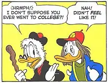 Flintheart Glomgold is a cartoon character created in 1956 by Carl Barks. He is a South African American Pekin Duck and the business rival of Scrooge McDuck, usually portrayed as an ambitious, ruthless, and manipulative businessman who shares many of the same qualities as Scrooge—the drive for massive wealth, and the cunning and creativity to obtain the same—but he lacks any of Scrooge's tendencies towards generosity and compassion.[1] In Don Rosa's The Life and Times of Scrooge McDuck, he is said to be a Boer.