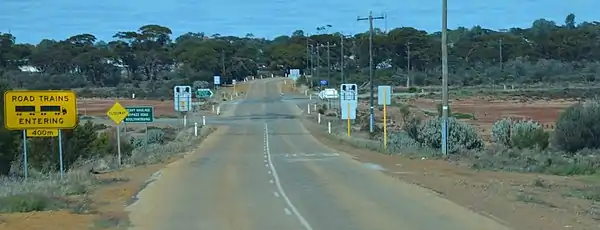 Floodway and signs, eastern side of Southern Cross, Western Australia