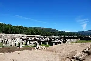 Cuevillas's archeological work, which grew with the assistance of the people associated with the Museo da Comisión de Monumentos, is reflected in the study A mansión de Aquis Querquernis (1921) contained a vast amount of work on pre-Roman Galicia.[4] In fact, it was him and his group of collaborators that began a brief excavation in the early 1920s on the site of the Roman encampment of Aquis Querquennis, discovering the wall of the encampment, although they didn't this short wall as the principle wall of the complex, and other walls of small size related to habitable structures.