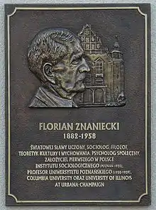 Florian Witold Znaniecki (15 January 1882 – 23 March 1958) was a Polish and American philosopher and sociologist who taught and wrote in Poland and in the United States. Over the course of his work he shifted his focus from philosophy to sociology. He remains a major figure in the history of Polish and American sociology; the founder of Polish academic sociology, and of an entire school of thought in sociology.[2] He won international renown as co-author, with William I. Thomas, of the study, The Polish Peasant in Europe and America (1918–1920), which is considered the foundation of modern empirical sociology. He also made major contributions to sociological theory, introducing terms such as humanistic coefficient and culturalism.