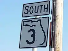 In 1976, the Florida Department of Transportation added a "C-" prefix to the signs on the stretch south of SR 520 and started the transition from State Road 3 to County Road 3.