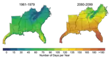 Southern Florida's mangroves are a tropical species that are limited to the tip of the Florida peninsula and the Florida Keys due to a climate preference. The upper portion of Florida falls into a sub-tropical climate hindering mangrove growth there due to cold weather events such as freezing. Twenty-eight years of satellite imagery has shown that mangroves have shifted their range northward in Florida in response to less harsh winters and less frequent cold events.[14] This is an issue apart from sea level rise which will cause mangroves to move inland even though both are caused by climate change.