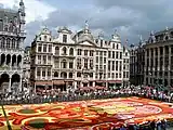 The Flower Carpet (French: Tapis de Fleurs, Dutch: Bloementapijt) is a biennial event in Brussels in which volunteers from around Belgium convene at the Grand-Place/Grote Markt, the historic centre of the city, to weave a carpet-like tapestry out of colourful begonias.[1] The event takes place every other August, coordinating with Assumption Day.[2] Nearly a million flowers are required to create the ephemeral 1,800 m2 (19,000 sq ft) carpet.[3]