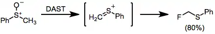 When sulfoxides are treated with DAST, an interesting Pummerer-type rearrangement occurs to afford α-fluoro sulfides.[14]