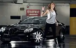 The video commences with a short segment of dramatic music. It then focuses on Cyrus, wearing a white tank top, jeans, boots and a black leather jacket, and her boyfriend leaving a movie theater and discussing the movie they saw. Suddenly, Cyrus' boyfriend begins to cough as a full moon emerges from behind the clouds. Cyrus is confused, then horrified as she watches him transform into a paparazzi, and runs away from him as he shouts "Miley, come here! I just want a couple of shots!" and tries to snap pictures of her. The music of "Fly on the Wall" begins as Cyrus runs into a parking garage and tries to hide behind a pillar and a black Mercedes-Benz SLR McLaren. As soon as Cyrus tries to move away from the car, a mob of paparazzi begins to chase her with their cameras. Throughout much of the video, Cyrus runs and hides from the mob. Clips interspaced throughout the video feature her in a long silver shirt and jeans singing and dancing in front of the Mercedes. Eventually, Cyrus is cornered by the paparazzi. She is scared, but then surprised and perplexed when the mob unexpectedly begins to dance in a synchronized manner. Her boyfriend, appearing normal, then arrives in the Mercedes to rescue her. Inside the car, Cyrus describes her strange encounter with the paparazzi to him. Unknown to Cyrus, her boyfriend has planted a video camera in the car; the music video concludes with a shot of the website he posts the video on beneath the headline, "Miley Cyrus Bugs at Paparazzi!!!" The music video to "Fly on the Wall" was first seen on December 5, 2008, on MTV's FNMTV.[28] The video is inspired by Michael Jackson's iconic music video, "Thriller", but trades zombies for paparazzi. MTV also compared the "Fly on the Wall" video for those for "Circus" by Britney Spears and "Rumors" by Lindsay Lohan.[28]