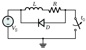 Now if we open the switch with the diode in place, we only need to consider L1, R1 and D1. For I > 0, we can assume:
