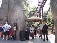![]() A vehicle ascending the lift hill on Flight of the Hippogriff. An animatronic Hippogriff can be seen in the background, to the left side of the lift hill. | |