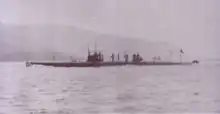The following year, in 1915, the first group of submarine officers was formed in the country.[12] Two years later, the Submersible Flotilla gained the support of the submarine tender ship Ceará, which offered mobile support for repairs, maintenance, supply of torpedoes, electricity, compressed air, fuel, drinking and distilled water, spare parts and crew accommodations. It was the only navy ship that allowed an F submarine to be docked for testing and repairs. However, there are no records of this ever occurring throughout the class's entire period of activity.[13][10] On the occasion of the First World War, the submarines were appointed patrol the coast of Rio de Janeiro, with the only incident being the near collision of the F1 against the merchant ship Gurupy.[2]