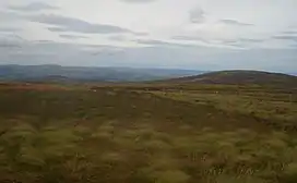 The views from the summit are extensive, if unremarkable due to the featureless, flat moorland surroundings. The summit is marked by a trig point. At the northern end of the summit area lies a ruined stone tower.[1]