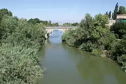 The Foglia is the northernmost river of the Marche region of Italy. In ancient times it was known as Pisaurus,[1] as it debouched into the Adriatic Sea at Pisaurum (modern Pesaro). It was also known as the Isaurus.[2] The source of the river is west of Sestino in the province of Arezzo (which is in the Tuscany region of Italy) in the Umbrian-Marchean Apennines mountains.[3] It flows east through an extension of the province of Pesaro e Urbino and then back into Arezzo before forming the border between Arezzo and Pesaro e Urbino. The river then flows into the province of Pesaro e Urbino past Piandimeleto and curves northeast and flows past Sassocorvaro before curving east again. The river meanders south of Montecalvo in Foglia before curving northeast and flowing near Colbordolo, Saludecio, Sant'Angelo in Lizzola, Montecchio, Montelabbate and Tavullia before entering the Adriatic Sea near Pesaro.