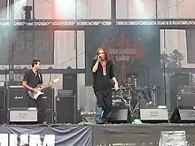 The German band Subway to Sally was formed in 1992 as a folk rock band, singing in English and incorporating Irish and Scottish influences in their music.[12] With their second album MCMXCV released in 1995, the band adopted a "more traditional approach" and started singing in German.[12] Taking Skyclad as an influence,[13] Subway to Sally performs a blend of hard rock and heavy metal "enriched with medieval melodies enmeshed in the songs via bagpipes, hurdy-gurdy, lute, mandoline, shalm [sic], fiddle and flute" and combined with "romantic-symbolic German-speaking poetry" in their lyrics.[14] With chart success in their native Germany,[12] they have since been credited as the band "that set off the wave of what is known as medieval rock."[15]