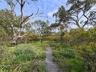 Woody weeds are largely under control, with little effort required to remove new seedlings as they emerge.[5] Olive, African boxthorn and bridal creeper (all declared weeds under the Landscape South Australia Act 2019) have been virtually eliminated from the park.[5]