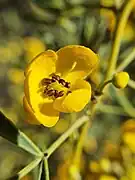The vegetation assemblage in Folland Park is one of the few remaining examples of the mallee woodland that once covered much of the Adelaide Plains.[8] The tallest canopy plants are Eucalyptus porosa, E. socialis and E. dumosa.[5] The under-storey is dominated by Senna artemisioides and various Acacias.[5] The ground layer includes chenopods, grasses and daisies.[5] The Native Pine can still be found in the park, though it is not as numerous as it once was.[5]