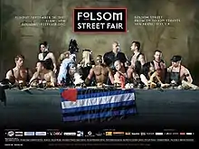 For the 24th annual event held on September 30, 2007, the official poster artwork was a photo featuring well-known LGBT and BDSM community members in festive and fetish attire including Sister Roma "as players in an innovative version of the culturally iconographic" The Last Supper by Leonardo da Vinci, complete with a table draped with the Leather Pride flag and "cluttered with sex toys, whips, and various (BDSM) restraints".[33] The image by FredAlert[34] was used on the official event guide and produced as collector's posters that were displayed throughout the city as advertising for the event. Some conservative religious groups criticized the image as anti-Christian and blasphemous, although media outlets noted that parodies and homages of the Last Supper painting like Renée Cox's Yo Mama's Last Supper are numerous, including ones by The Simpsons, The Sopranos, Phish, That '70s Show, Robert Altman (in the film MASH) and the Boston Red Sox.[35][36] Chris Glaser, a gay clergyman and interim senior pastor at San Francisco's Metropolitan Community Church agreed that "they are just having fun" with both the painting and the notion of 'San Francisco values,' stating he thought it was "tastefully and cleverly done".[34]