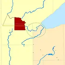 The Fond du Lac Indian Reservation (or Nah-Gah-Chi-Wa-Nong (Nagaajiwanaang in the Double Vowel orthography), meaning "Where the current is blocked" in the Ojibwe language) is an Indian reservation in northern Minnesota near Cloquet in Carlton and Saint Louis counties. Off-reservation holdings are located across the state in Douglas County, in the northwest corner of Wisconsin. The total land area of these tribal lands is 154.49 square miles (400.1 km2).[1] It is the land-base for the Fond du Lac Band of Lake Superior Chippewa. Before the establishment of this reservation, the Fond du Lac Band of Lake Superior Chippewa were located at the head of Lake Superior, closer to the mouth of the Saint Louis River, where Duluth has developed.