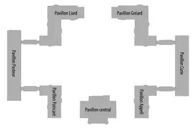 The first stone was laid on May 9, 1923, and construction finished in 1925.[3] The buildings were designed by Lucien Bechmann in a style inspired by the architecture of Oxford. Each of the six residential buildings is named after famous scientists and chancellors of the French university: Paul Appell, Pierre and Marie Curie, Octave Gréard, Louis Liard, Louis Pasteur and Raymond Poincaré.