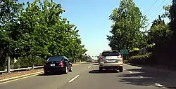 The widening of Oregon Avenue from a congested narrow residential street to a median-divided 4-lane Oregon Expressway was narrowly approved by Palo Alto voters in a June 5, 1962, election; about 90 homes on the south side of Oregon Avenue were moved or destroyed to make room for it.[8] The original Oregon Ave still exists on the north side of the roadway, though is mostly separated from G3 with trees and shrubbery.