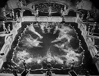 Kent's business partners announce that they have a big deal pending with the Apolinaris theater circuit, but getting the contract depends on Kent impressing Mr. Apolinaris (Paul Porcasi) with three spectacular prologues, presented on the same night, one after another at three different theaters. Kent locks himself and his staff in the offices to prevent espionage leaks while they choreograph and rehearse the three production numbers. Kent then stages "Honeymoon Hotel", "By a Waterfall" (featuring the famous "Human Waterfall") and "Shanghai Lil", featuring Cagney and Ruby Keeler dancing together.[8]