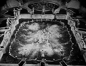 Footlight Parade is a 1933 American pre-Code musical film starring James Cagney, Joan Blondell, Ruby Keeler and Dick Powell and featuring Frank McHugh, Guy Kibbee, Hugh Herbert and Ruth Donnelly. The film was written by Manuel Seff and James Seymour based on a story by Robert Lord and Peter Milne, and was directed by Lloyd Bacon, with musical numbers created and directed by Busby Berkeley. The film's songs were written by Harry Warren (music), Al Dubin (lyrics),[1] Sammy Fain (music) and Irving Kahal (lyrics),[2] and include "By a Waterfall", "Honeymoon Hotel" and "Shanghai Lil".