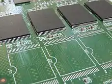 Populated (rear) and unpopulated (front) TSOP land patterns on a printed circuit board.
