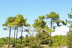 The predominant tree species of the forest is the maritime pine which covers 75% of the forest but is however now experiencing a real decline. Other tree species include Stone pine, Corsican Black pine (Pinus nigra var. corsicana), Holm oak, and Montpellier maple.
