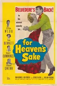 For Heaven's Sake is a 1950 fantasy film starring Clifton Webb as an angel trying to save the marriage of a couple played by Joan Bennett and Robert Cummings. It was adapted from the play May We Come In? by Harry Segall.[3]
